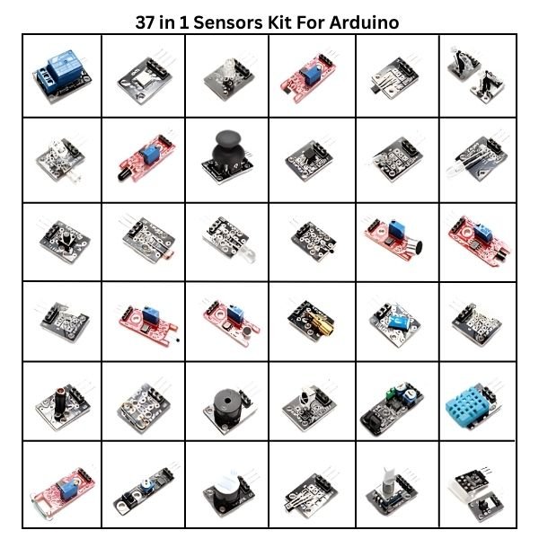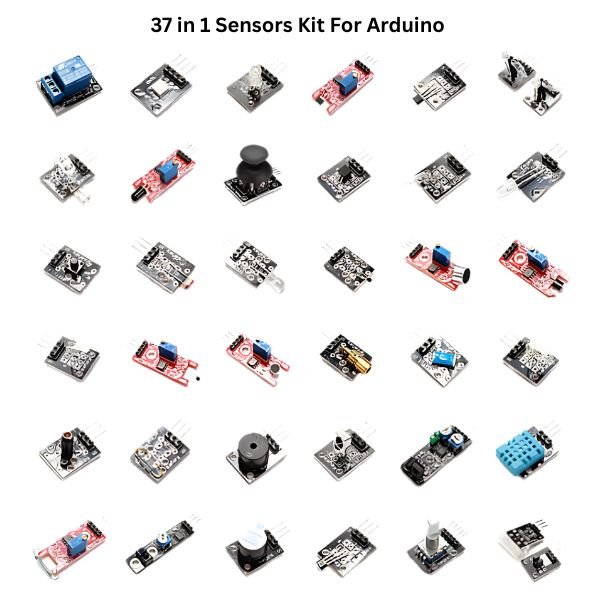 The 37 in 1 Sensor Kit – 37 Sensors for Arduino  is supplied with a variety of sensors that are compatible with Arduino Board.This 37 in 1 Arduino Sensor Kit Includes a variety of sensors such as a Joystick, Relay, Sound Sensors (big and small), Tracking Sensor, Flame Sensor, RGB LED Module, Linear Hall Sensor, Touch Sensor, Digital Temperature Sensor, Buzzer Module, and many more.The 37 in 1 Sensor Kit – 37 Sensors for Arduino is ideal for students, beginners, and DIY makers exploring electronics and automation. Carefully curated by StemVolt, it supports practical STEM learning and project-based experimentation.