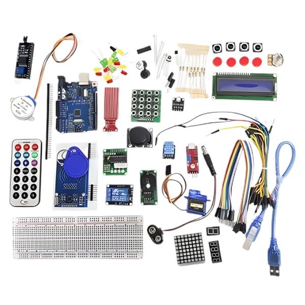 The Arduino UNO Starter Kit for Beginners is open-source electronics prototyping platform based on flexible, easy-to-use hardware and software. CD/DVD included with user guide, Code for driven electronics devices, and many more. This tutorial focused on introducing Arduino software and code to drive electronics devices. The Arduino UNO Starter Kit for Beginners supports step-by-step learning and practical understanding of microcontrollers. Carefully curated by StemVolt, it is suitable for students, schools, and DIY makers who want a smooth start in robotics and embedded systems.