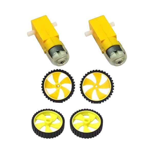 Dual Shaft DC BO Motor with 65mm Yellow Wheels Kit