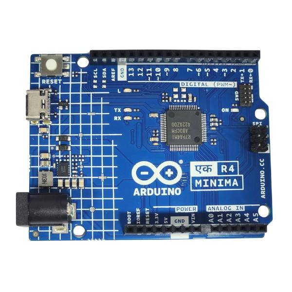 The Official Arduino UNO EK (एक) R4 Minima is used for building embedded systems, automation, and control-based electronics projects. Based on the arduino uno platform, it provides improved performance with a Chip. This Made in India board is suitable for students, makers, and engineers working on real-world applications and learning advanced microcontroller programming.